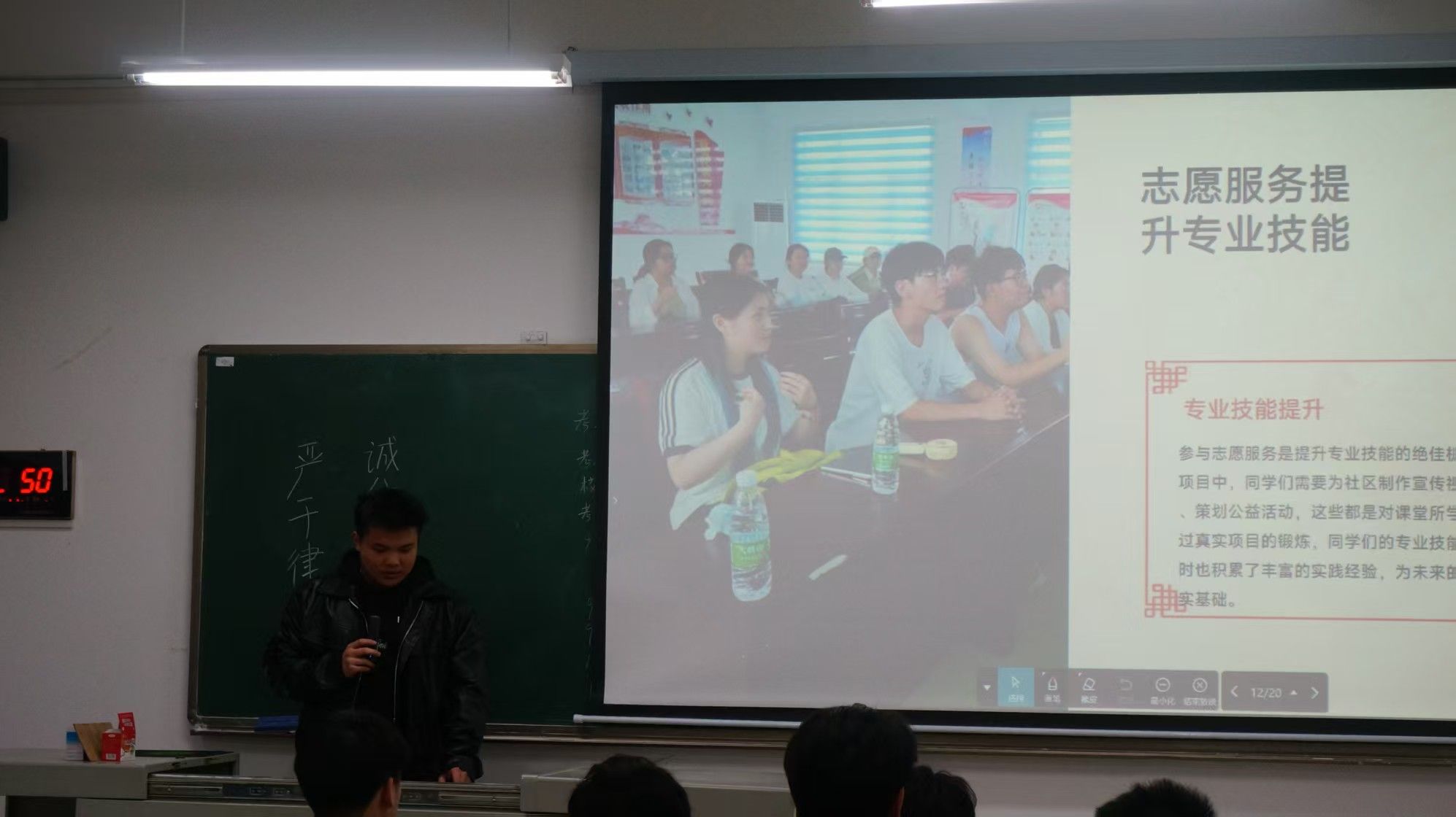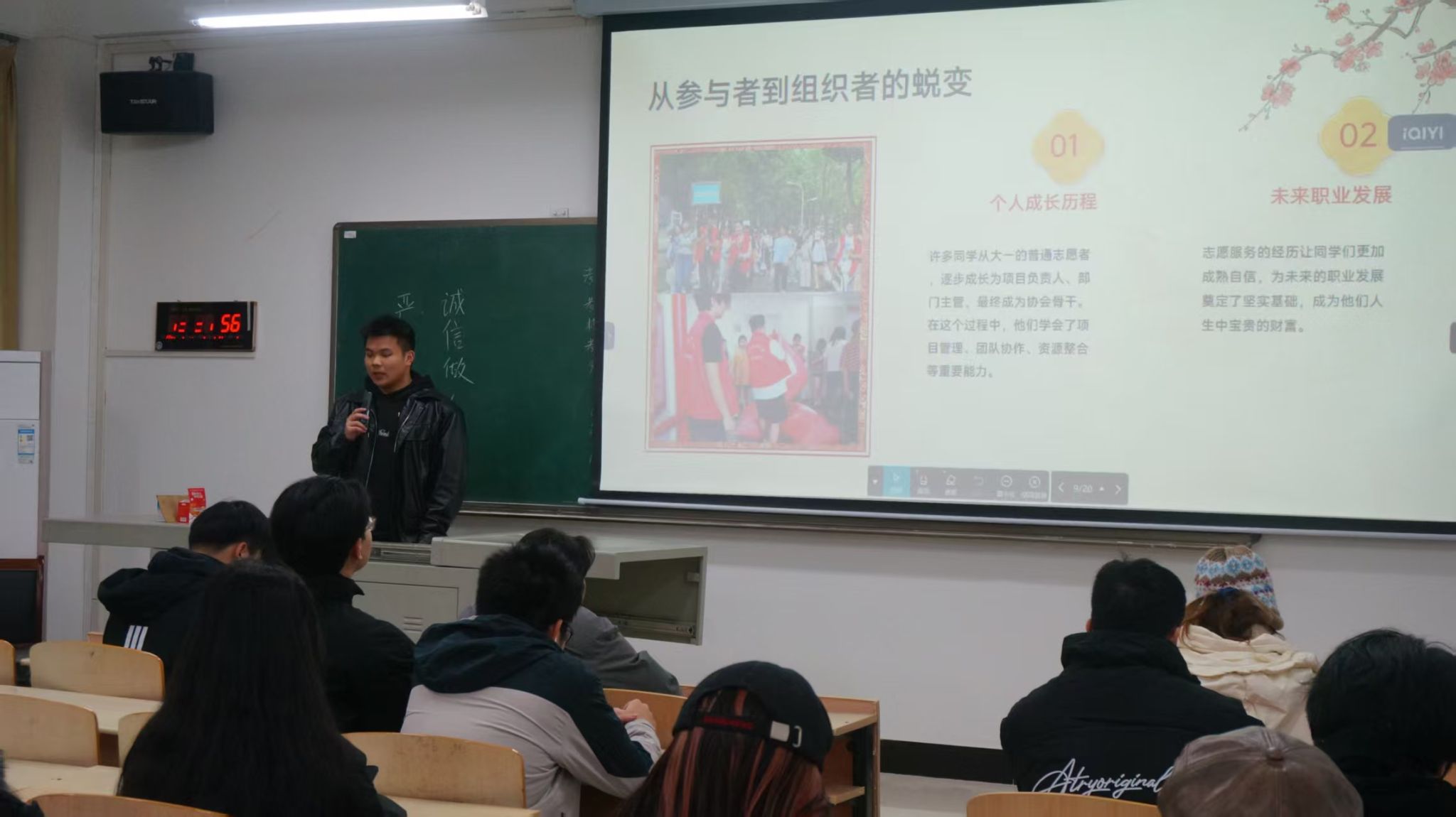 分享中,那些志愿服务里的动人瞬间让人热泪盈眶:酷暑里扎根基层的新闻传播学院三下乡志愿服务队,每日值守尽责的教学楼志愿工作者,校园周围垃圾清理的服务者,他们用执着与爱心诠释了志愿精神的真谛。更让人振奋的是,许多同学从大一的普通志愿者,逐步成长为项目负责人、协会骨干,在实践中收获了项目管理、团队协作、危机处理等关键能力,为未来职业发展筑牢根基。