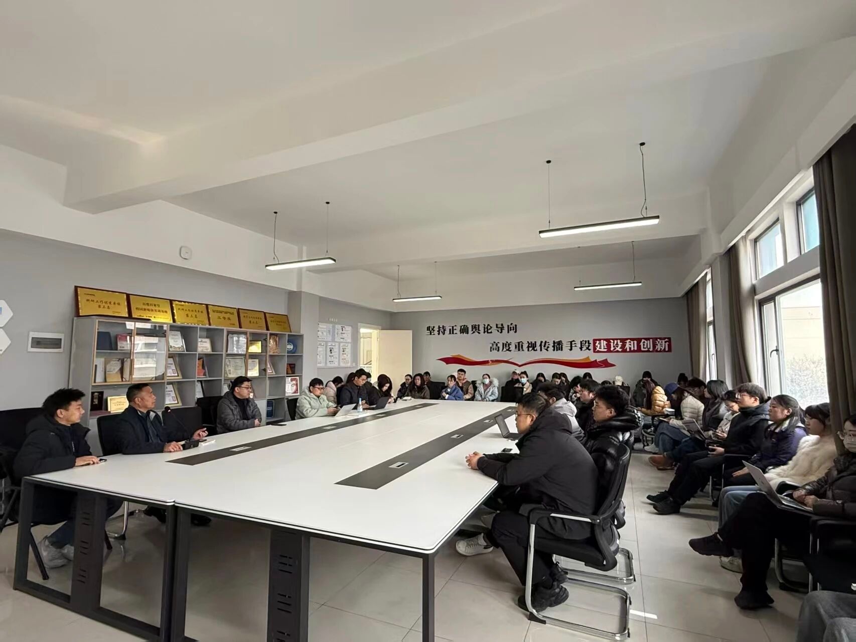 春回大地,万象更新。为确保新学期各项工作开好局、起好步,推动学院事业发展再上新台阶,新闻传播学院于近日召开新学期工作部署会。会议立足学院发展全局,围绕教学科研、学生管理、专业建设等重点领域谋篇布局,全面吹响新学期工作的“集结号”。学院书记张爱军、院长赵倩以及全体教职工共同参会,以饱满的热情共话发展、共绘蓝图。