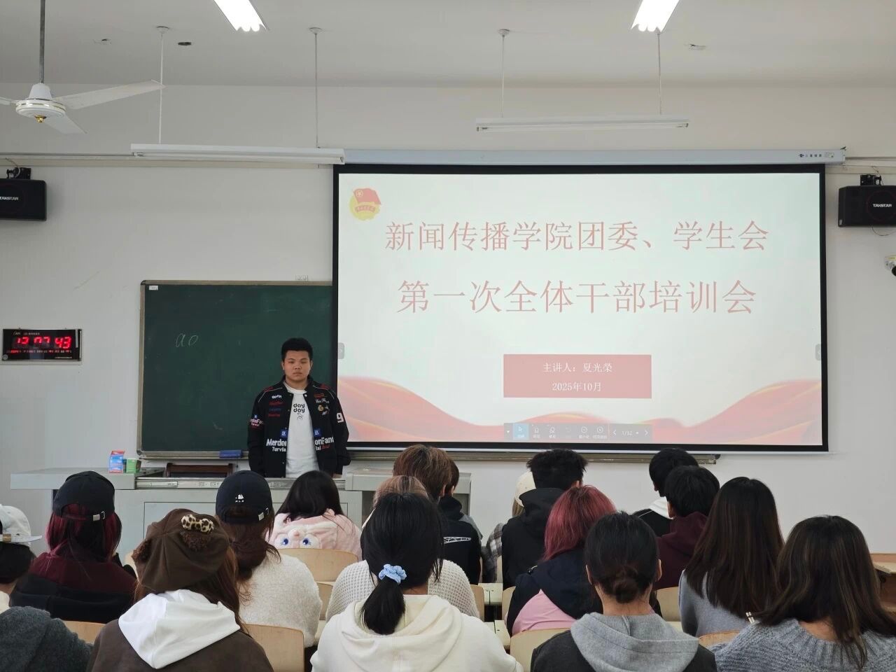 10月23日,新闻传播学院团委、学生会第一次全体干部培训会圆满召开。本次会议围绕干部管理条例、到梦空间培训及部门工作规划等关键事项展开,旨在提升学生干部业务能力,规范工作流程,为学院团委、学生会工作高质量开展奠定基础。